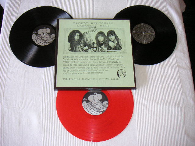3LP-Box (1x rotes Vinyl, 2x schwarzes Vinyl). Auflage 50 (100?) Stück. Die 3 LP's sind Nachpressungen der Violent Brains und der Live In Concert. Sehr schön gemachte Box- die wohl meistgesuchte Scheibe (bzw. Scheiben) der Speed/Thrash-Götter.