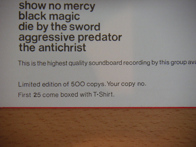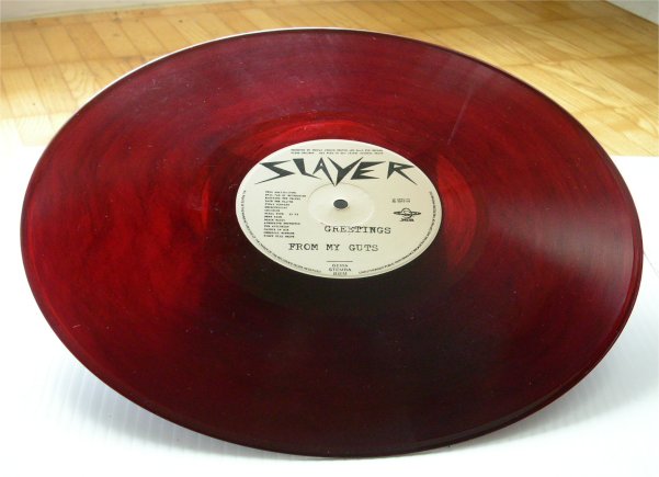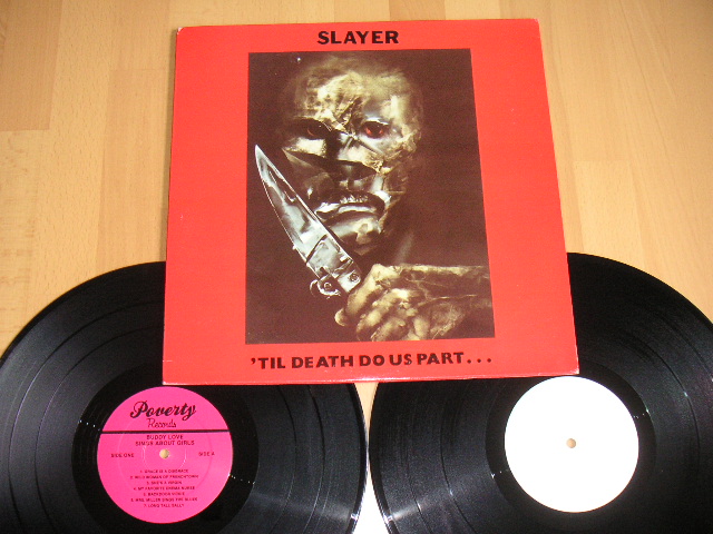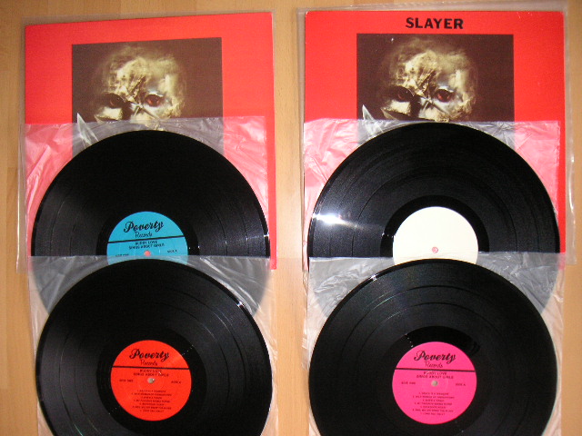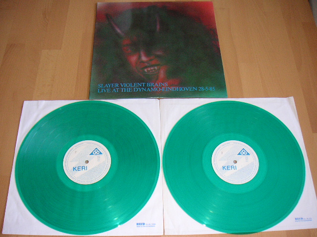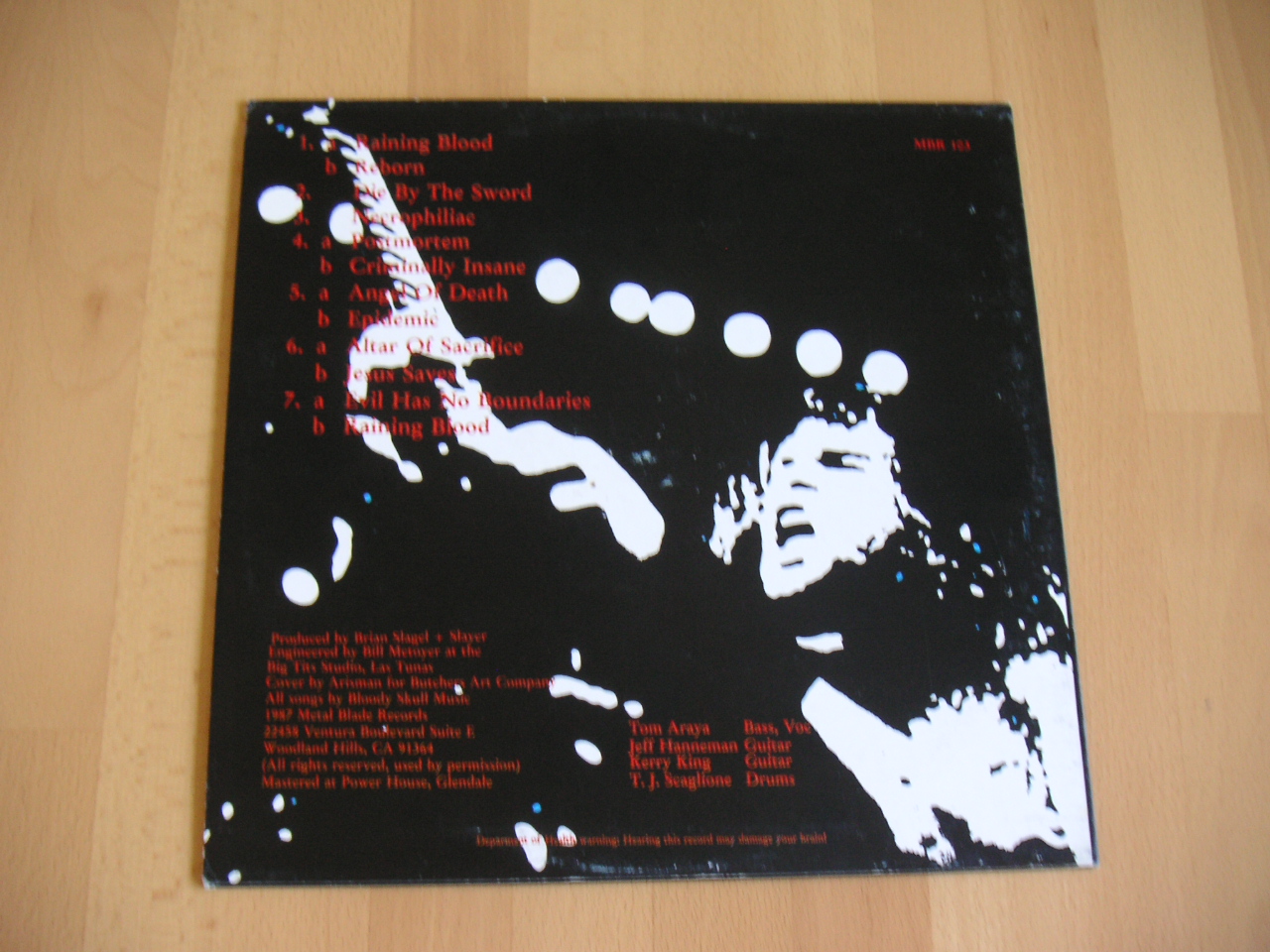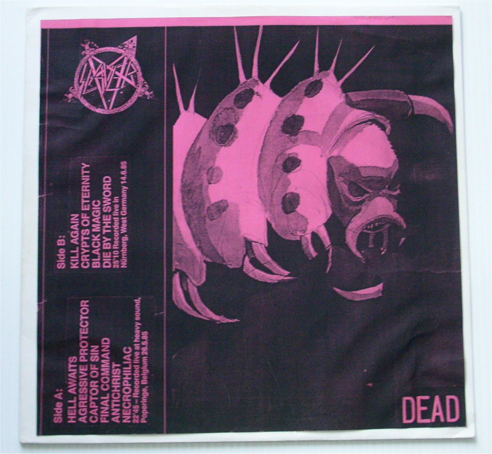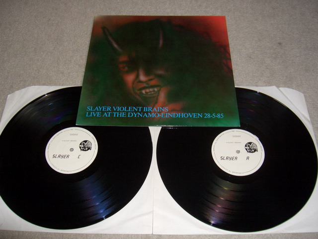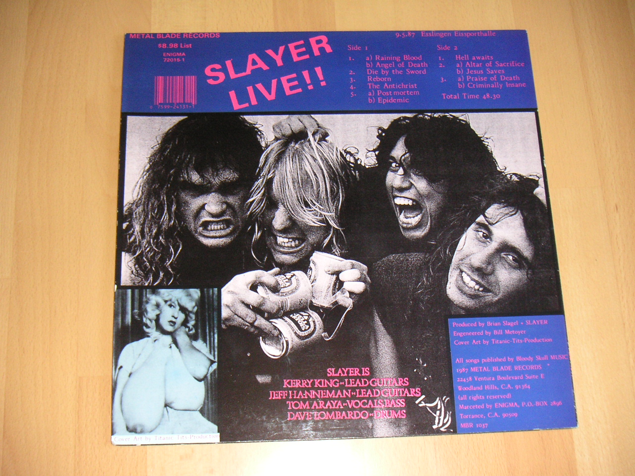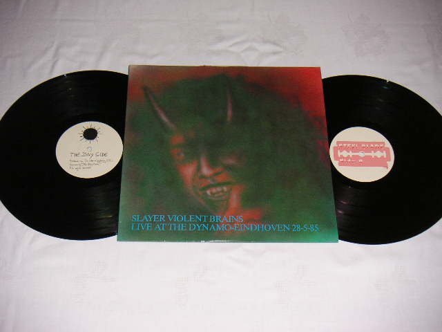 Konzert: 26.05.1985 Heavy Sound Belgien und 14.06.1985 Nürnberg. Diese Doppel LP (schwarzes Vinyl) ist auch in farbigen Pressungen rot/rot und rot/blau erschienen. Die "rot/blau-Pressung" dürfte mit die seltenste Scheibe von Slayer sein - Auflage 30 Stück ?. In den 90zigern noch einmal erschienen (schwarzes Vinyl) mit einem anderen Labelsticker (Originallabel: Insekt und Rasierklinge), (spätere Label WindyCity , Devil's Records , Lounging Records , See For Miles)